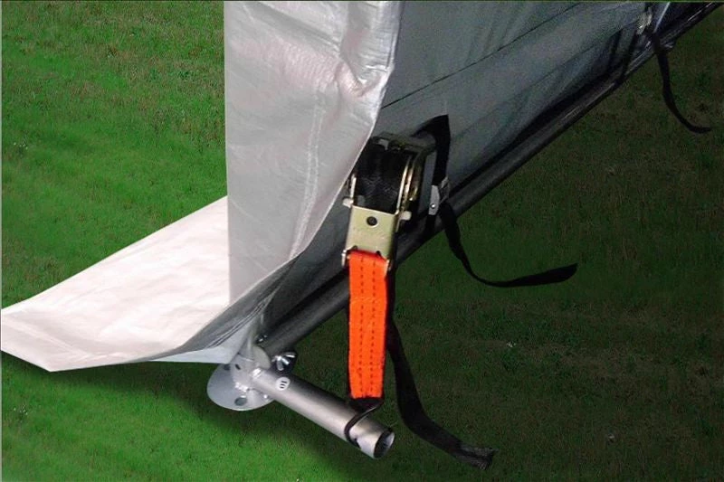 Super heavy-duty & waterproof with a commercial grade polyethylene cover, this round-top carport protects your car or boat from the worst elements. The double-zippered front door and rear door completely enclose the carport. The carport is equipped with 1.65″x 1.25″ oval-shaped galvanized steel frame made to last a lifetime.