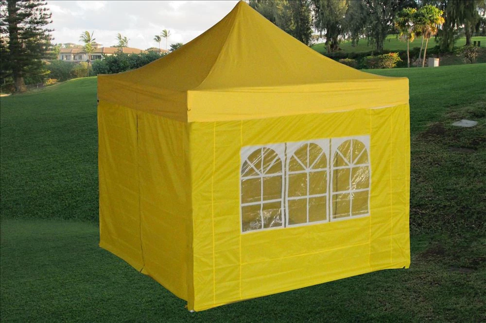 This pop up tent is a classic steel canopy. It can be quickly erected by two people without any tools. It comes in a complete package with a strong steel frame, top, side walls, ground pegs and a carry bag. It’s great for outdoor parties, markets, promotions, motorsports, picnic, sporting events and more.