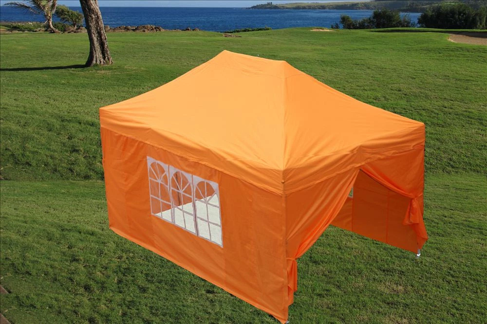 This Pop Up tent is a classic instant canopy. It can be quickly erected by two people without using any tools. It comes in a complete package with a strong steel frame, top, side walls, ground pegs and a carry bag. It’s great for outdoor parties, markets, promotions, motorsports, picnic, sporting events and more.