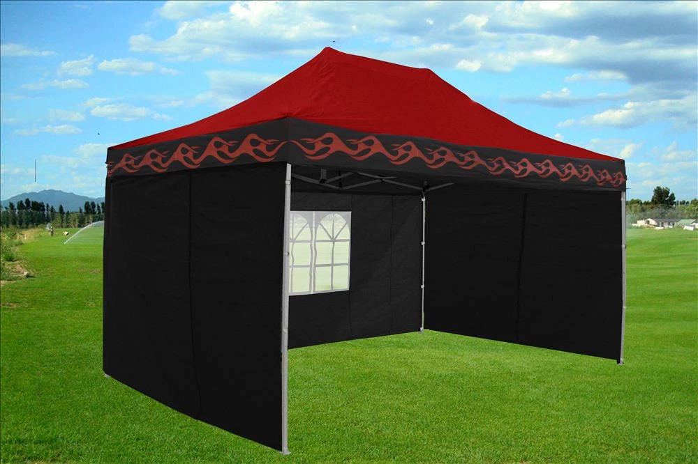 This pop up tent is a classic instant canopy. It can be quickly erected by two people without any tools. It comes as a complete package with a strong steel frame, top, side walls, ground pegs and a carry bag. It’s great for outdoor parties, markets, promotions, motorsports, picnic, sporting events and more.