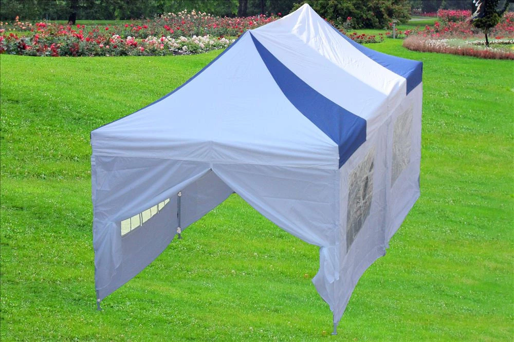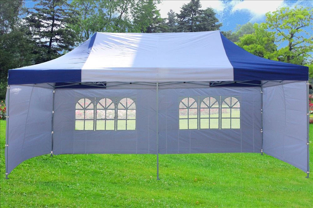 This Pop Up tent is a classic instant canopy. It can be quickly erected by two people without any tools. It comes as a complete package with a strong steel frame, top, side walls, ground pegs and a carry bag. It’s great for outdoor parties, markets, promotions, motorsports, picnic, sporting events and more.