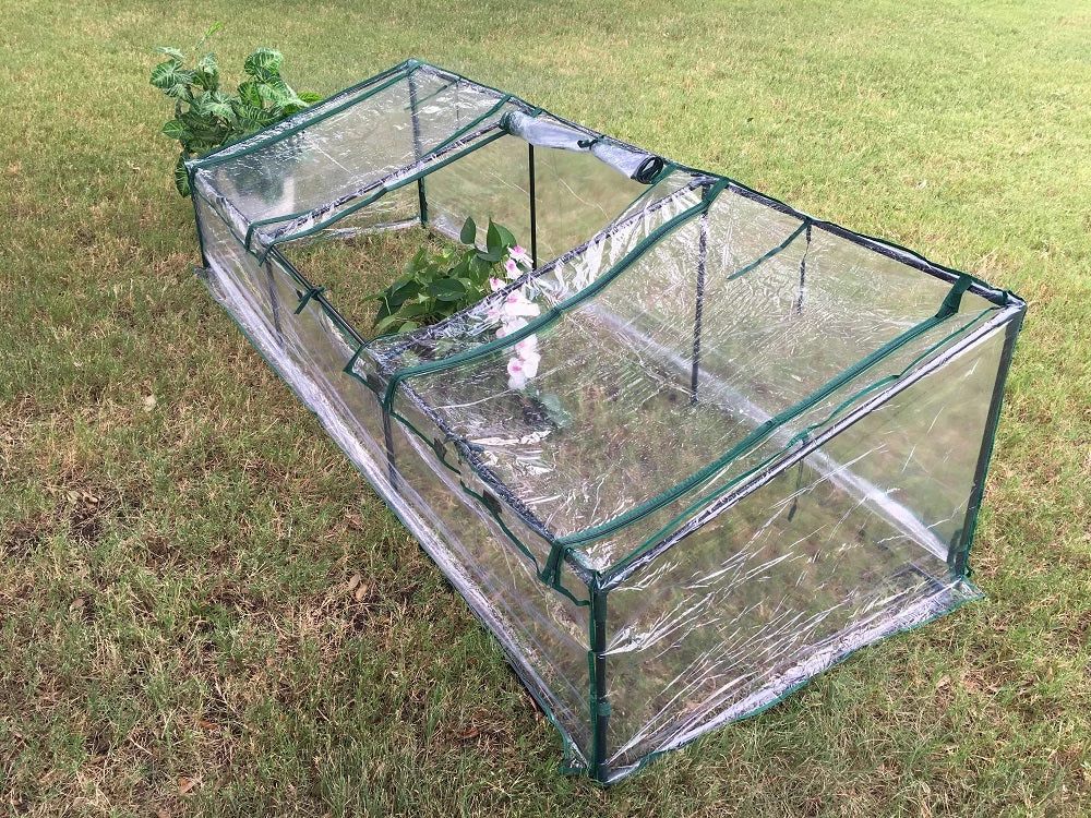 Handy for starting seeds, this portable greenhouse is lightweight and easy to assemble with marked connectors. It’s constructed with a sturdy steel frame and a removable clear PVC plastic cover. The zippered doors roll up for easy access and ventilation.