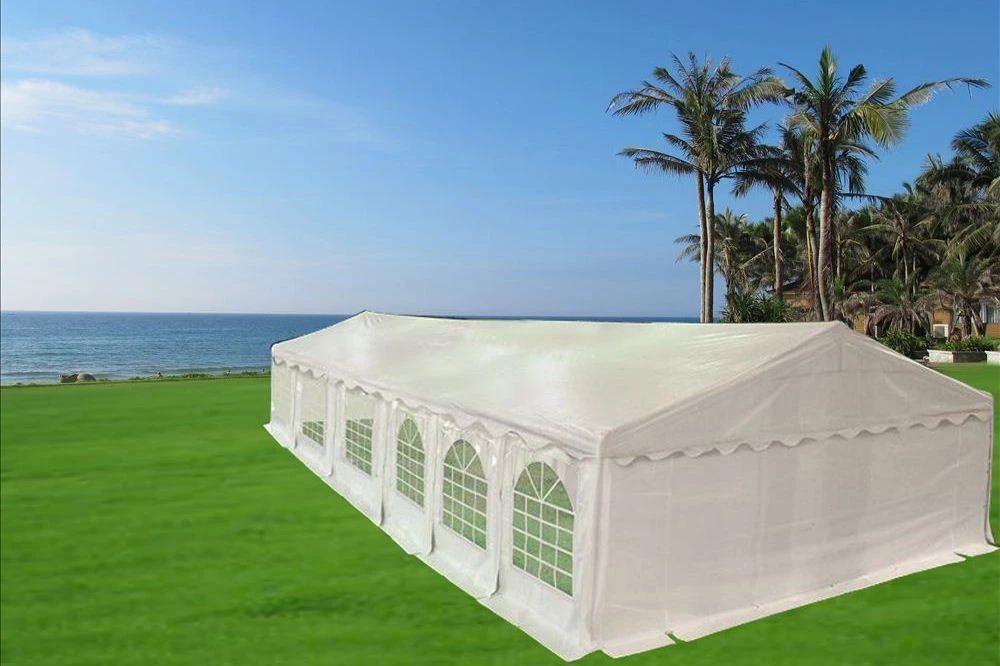 This is our best model – very hard wearing, with a heavy-duty, fire-retardant 480g PVC canopy and 350g/m2 PVC sides. The fabric is a much more luxurious material than the polyethylene used. The material is specially coated on the inside making it much more water resistant than the polyethylene. A fantastic durable canopy is ideal for home use and for commercial use. Easy to assemble; great for weddings, parties, shows, exhibitions, storage and as a car shelter.