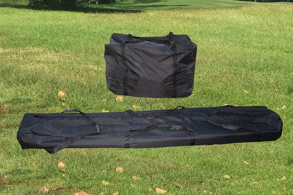 It’s very important to anchor your tent to the ground securely. Tie Down Kits, Ground Bars, and Heavy Duty Pegs are recommended in even the calmest weather conditions. This item should not be used as a permanent structure. It is recommended that you do not leave this item unattended during inclement weather (i.e. rain, hail, sleet, snow, wind, and ice) and assembled overnight. This item is not manufactured to withstand the weight of any form of precipitation left on the top cover.
