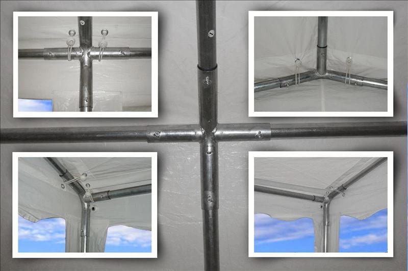 We recommend that you buy storm straps and extra-long ground pegs to further secure your party tent in case of windy weather.