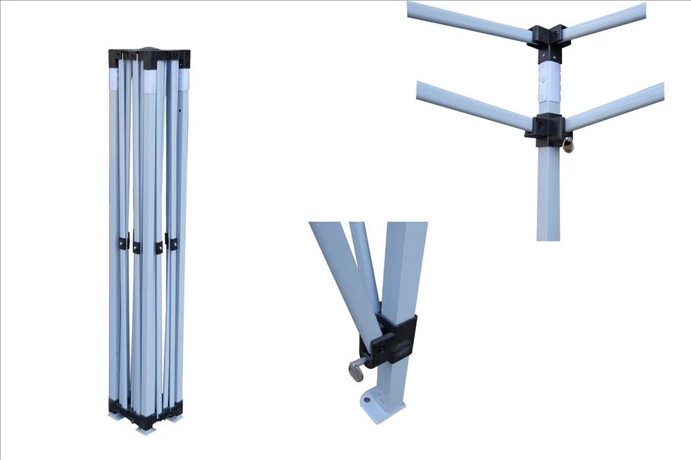 This easy pop-up canopy is a classic steel canopy. It can be quickly erected by two people without any tools. It comes in a complete package with a strong steel frame, top, side walls, ground pegs and a carry bag. It’s great for outdoor parties, markets, promotions, motorsport, picnic, sporting events and more.