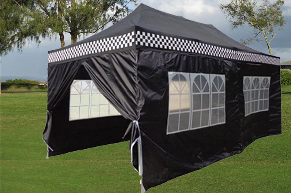 This pop up tent is a classic instant canopy. It can be quickly erected by two people without any tools. It comes as a complete package with a strong steel frame, top, side walls, ground pegs and a carry bag. It’s great for outdoor parties, markets, promotions, motorsports, picnic, sporting events and more.