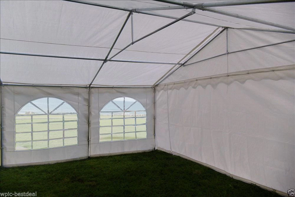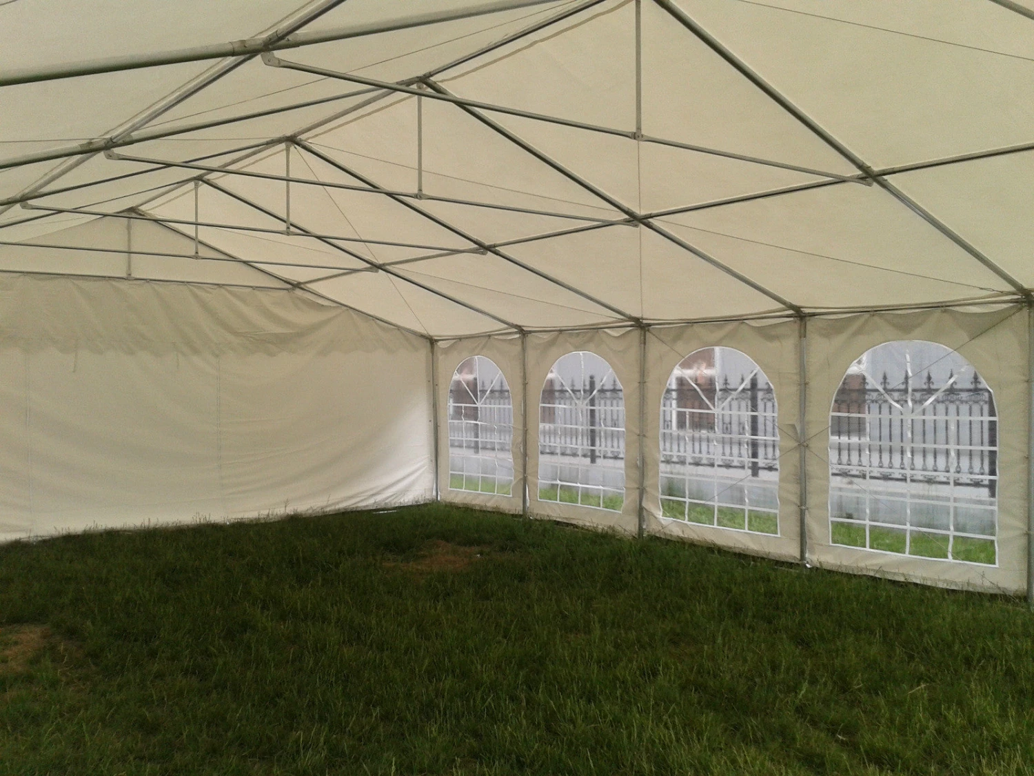 This is our best model – very hard wearing, with a thick heavy duty 500g PVC canopy and 500g PVC sides. The fabric is a much more luxurious material than the polyethylene used . The material is specially coated on the inside making it much more water resistant than the polyethylene. A fantastic durable canopy is ideal for home use and for commercial use. Easy to assemble. Great for weddings, parties, shows, exhibitions, storage and as a car shelter.
